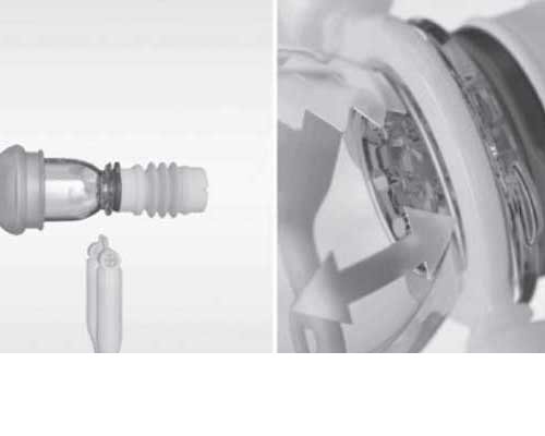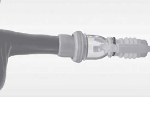 The vacuum around the glans is generated by the integrated pump. The spring attachment is attached.